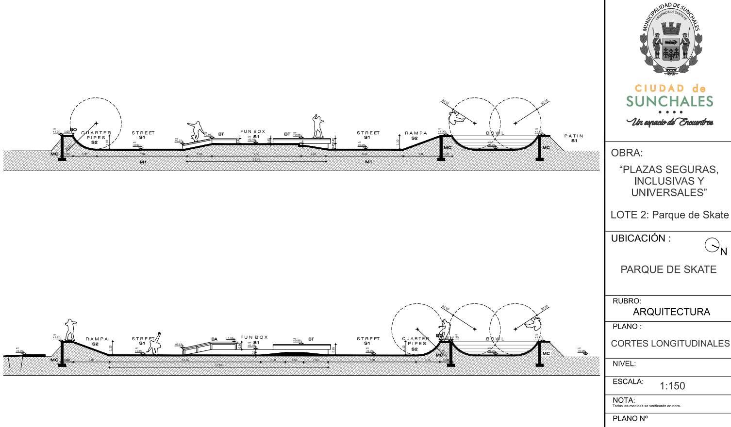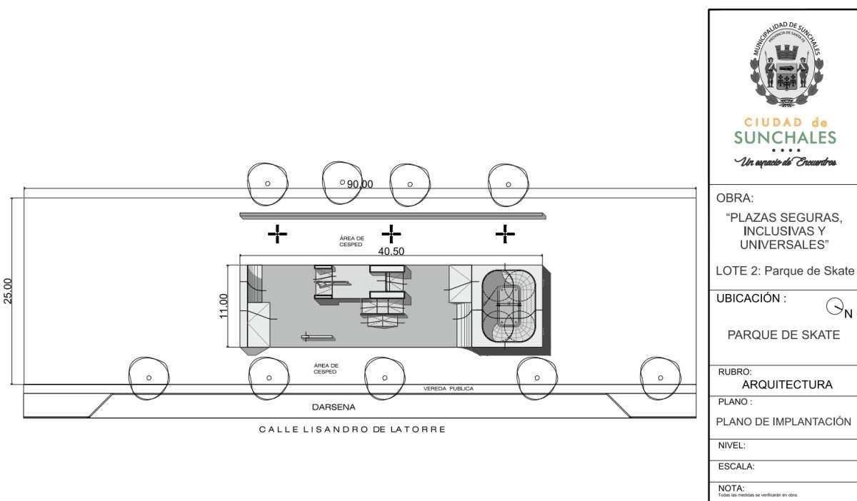 Partiendo de un espacio público de ubicación estratégica que cuenta con las dimensiones adecuadas, se proyecta una pista de Skate bajo los estándares normativos equipada con los elementos y materiales adecuados para el correcto desarrollo de la actividad y la seguridad de los deportistas. A su vez, se plantean tres torres de iluminación que aumentan la seguridad de todo este espacio público».