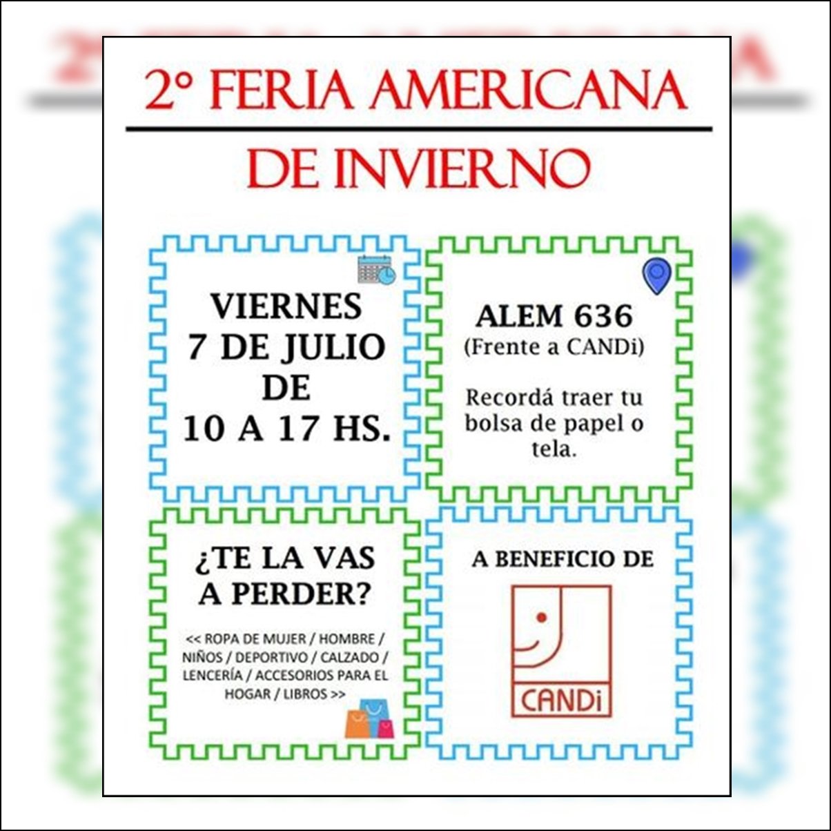 Se realizará el próximo viernes 7 de julio, desarrollándose en Alem 636 (frente a Candi), de 10 a 17 horas. En el lugar, se podrá adquirir ropa de mujer, hombre, niños, ropa deportiva, calzado, lencería, libros, accesorios para el hogar, entre otras cosas.