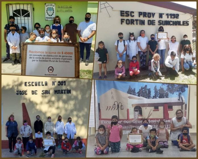 Renovando el tradicional compromiso hacia las escuelas rurales de nuestro Distrito, la Sociedad Rural encaró una actividad especial. Este año y como consecuencia directa de la pandemia y las limitaciones vigentes, no se pudo concretar la Cena a Beneficio, siendo la misma reemplazada por una pollada de singular éxito.
