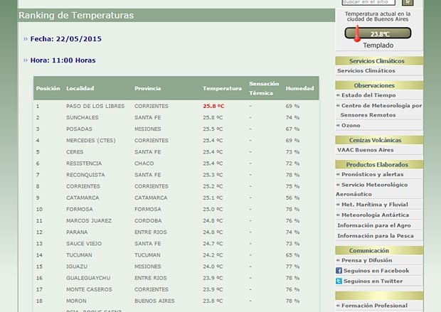 Repitiendo lo acontecido en los últimos veranos, nuevamente nuestra ciudad se instala dentro de los puntos más altos del país en cuanto a temperaturas. El ranking que elabora el Servicio Meteorológico Nacional así lo indica, señalando que a la hora 11, Sunchales era junto a Paso de los Libres, el registro más elevado.