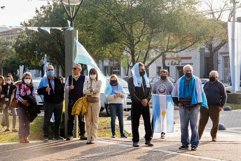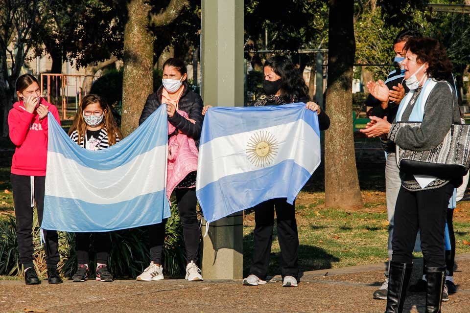 Si bien la convocatoria distó de ser multitudinaria, permitió sumar voluntades sunchalenses a esta determinación del Estado Nacional. Respetando la consigna de portar únicamente banderas argentinas, manteniendo el distanciamiento social y las medidas de prevención vigentes, la entonación de las estrofas del Himno Nacional Argentino, los presentes se manifestaron.