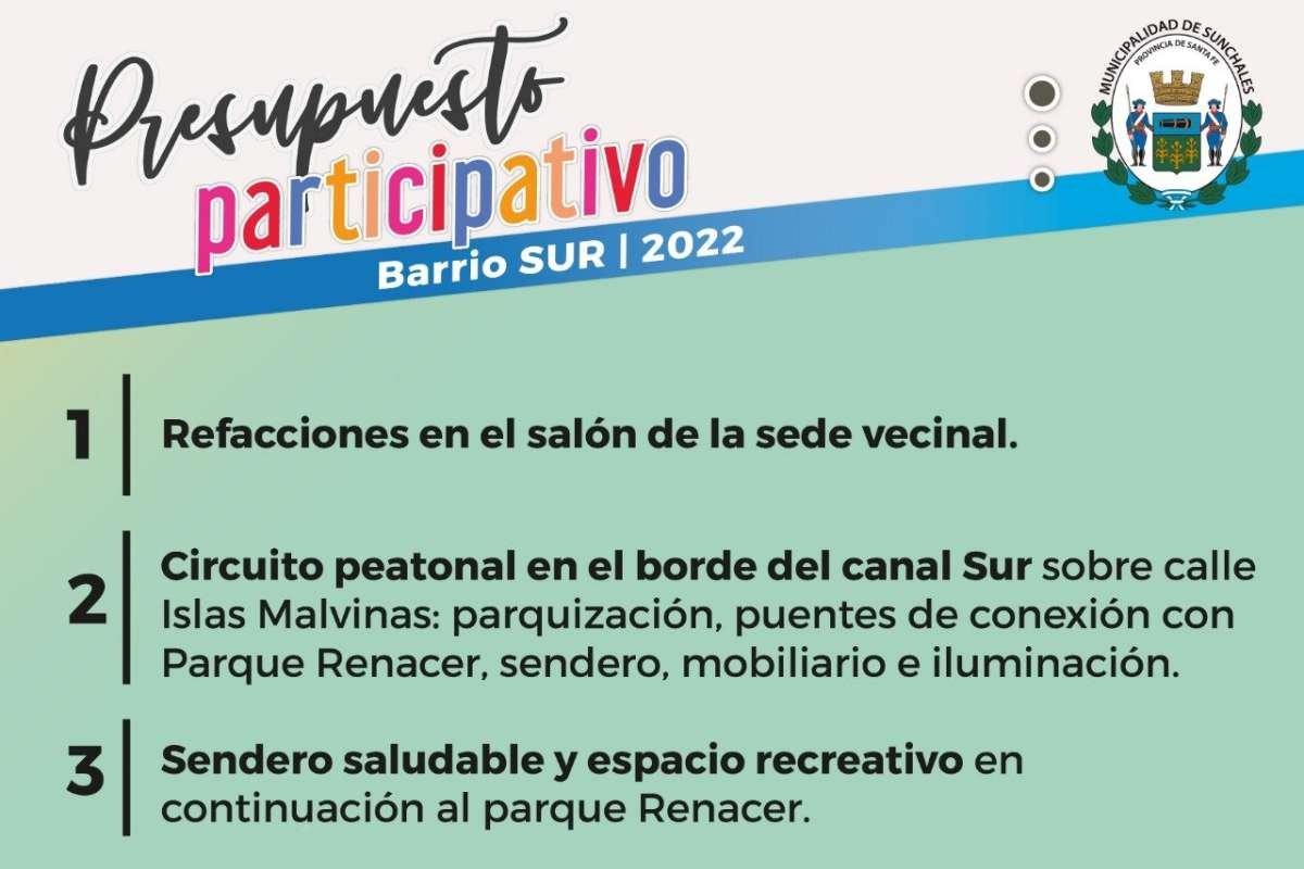 La Comisión Vecinal del barrio Sur, convoca a vecinas y vecinos a participar de la jornada de elecciones abiertas del Presupuesto Participativo, que se realizará el próximo sábado.