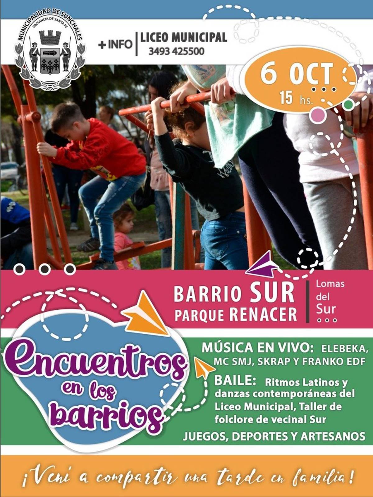 En los barriosBarrio Sur Sur: Nuevo Encuentro en los Barrios 05/10/2019 Por Ariel Balderrama 576 Compartir FacebookTwitterWhatsAppEmail La propuesta impulsada desde el Municipio local vuelve a tener espacio en Parque Renacer, del barrio Sur, en donde se concretará a lo largo de la tarde de mañana domingo. TemasEncuentro en los barriossur Compartir FacebookTwitterWhatsAppEmail Relacionadas Adelanto de la Campaña de Vacunación Antirrábica 15/07/2025 Continúa el ciclo de Cine al Aire Libre 05/02/2025 Cortan el tránsito en un tramo de avenida Sarmiento 03/02/2025 Ultimas noticias Actividades parroquiales 13/03/2026 ARB: El Apertura levanta el telón 13/03/2026 Venta de Bonos de la Cooperadora del Hospital 13/03/2026