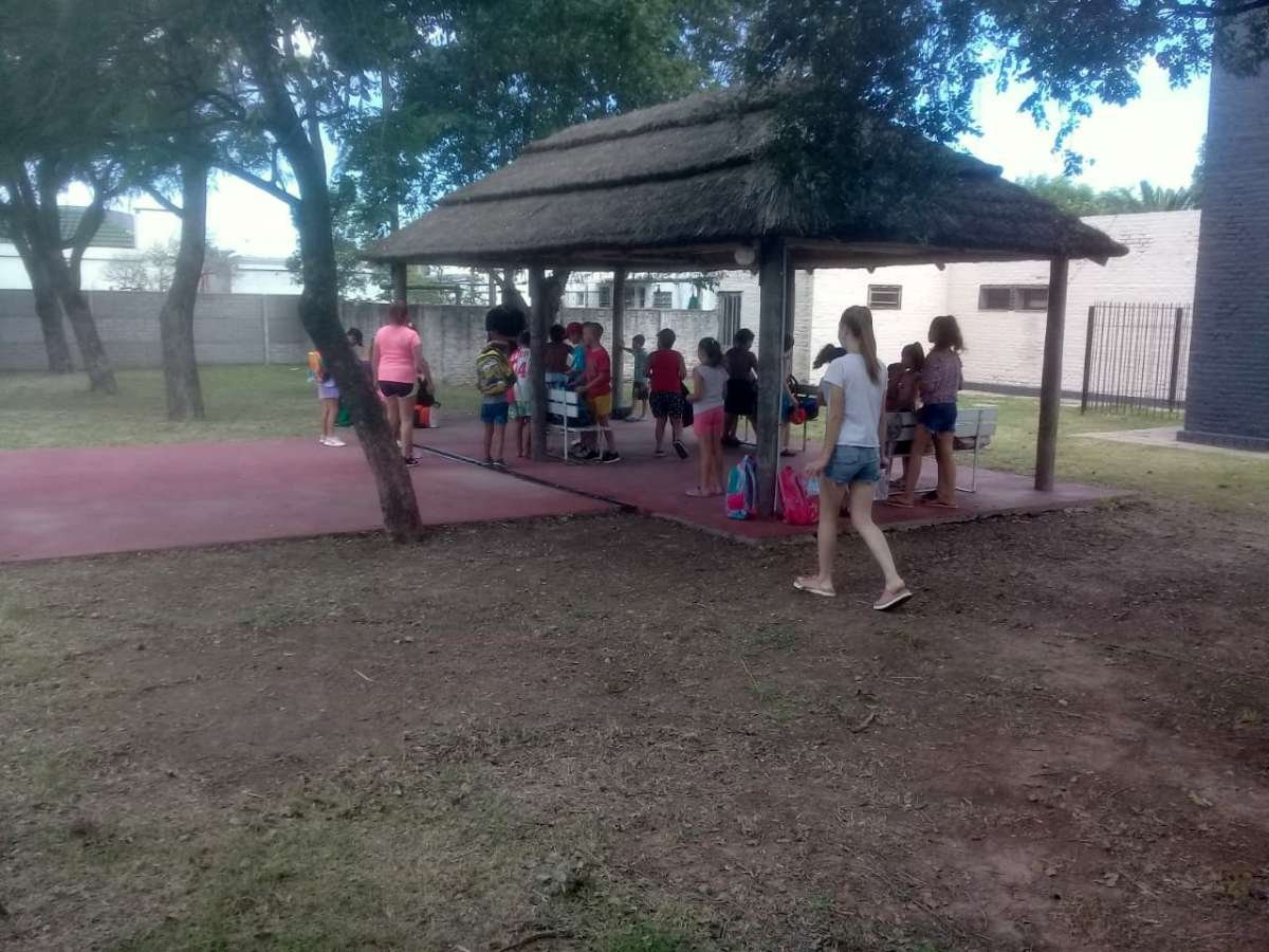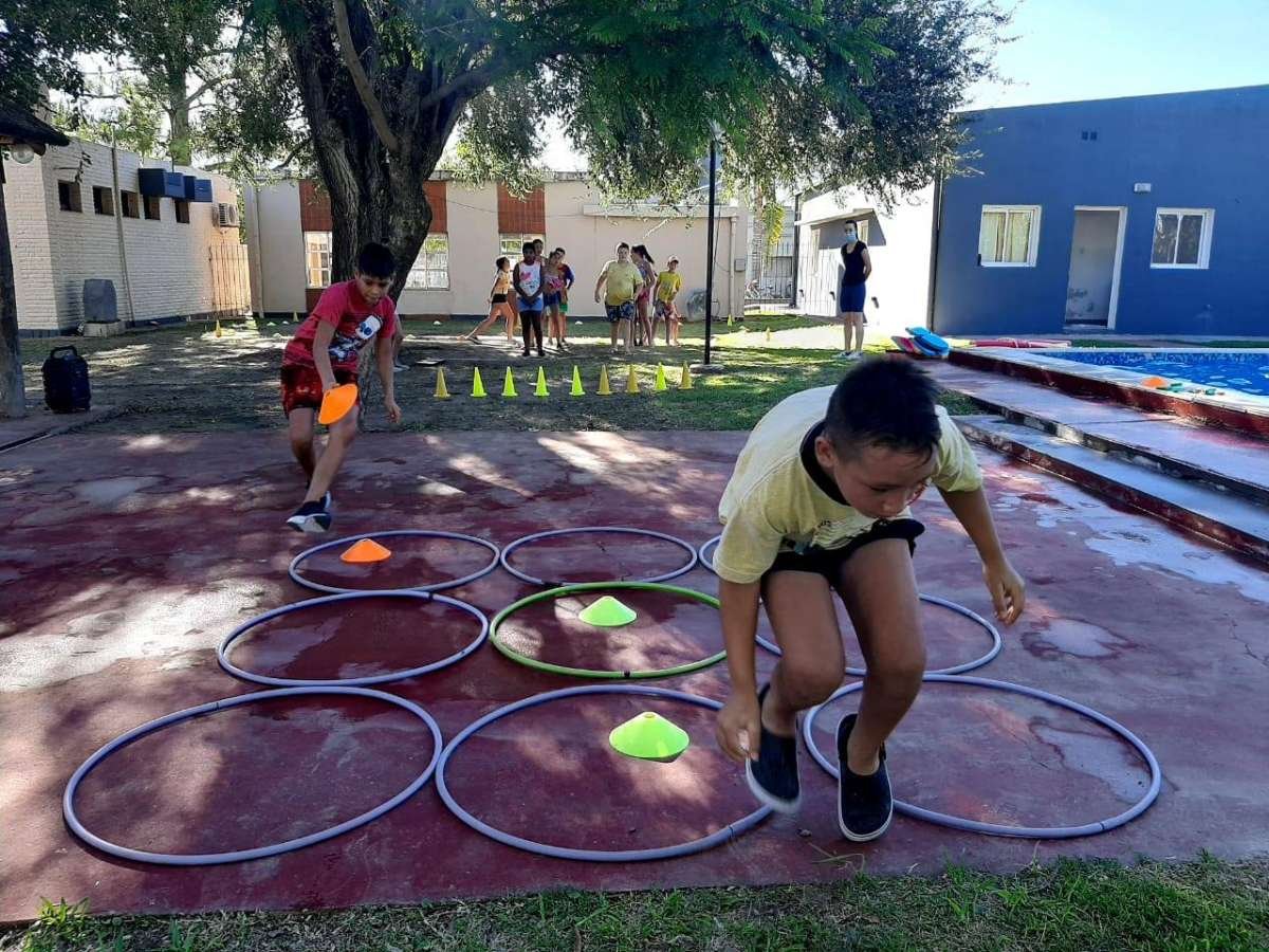 Son más de sesenta niños que desarrollan distintas actividades monitoreados por los profes Georgina y Facundo y acompañados por Yami, Cathi y Aina.