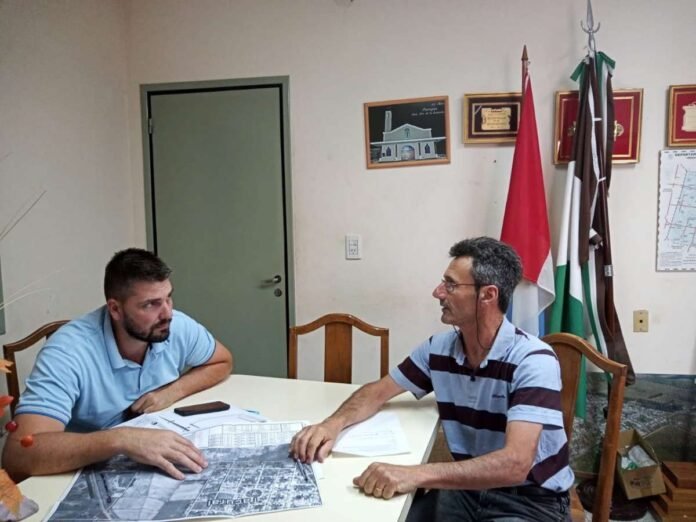 Reunido con el Presidente Comunal, Adrián Sola, estuvo analizando la futura obra de defensa del sector sur del pueblo. Este trabajo es muy esperado y ya cuenta con el primer depósito de los fondos necesarios (los cuales superan los 10 millones de pesos) para encarar el comienzo en el sector antes mencionando.