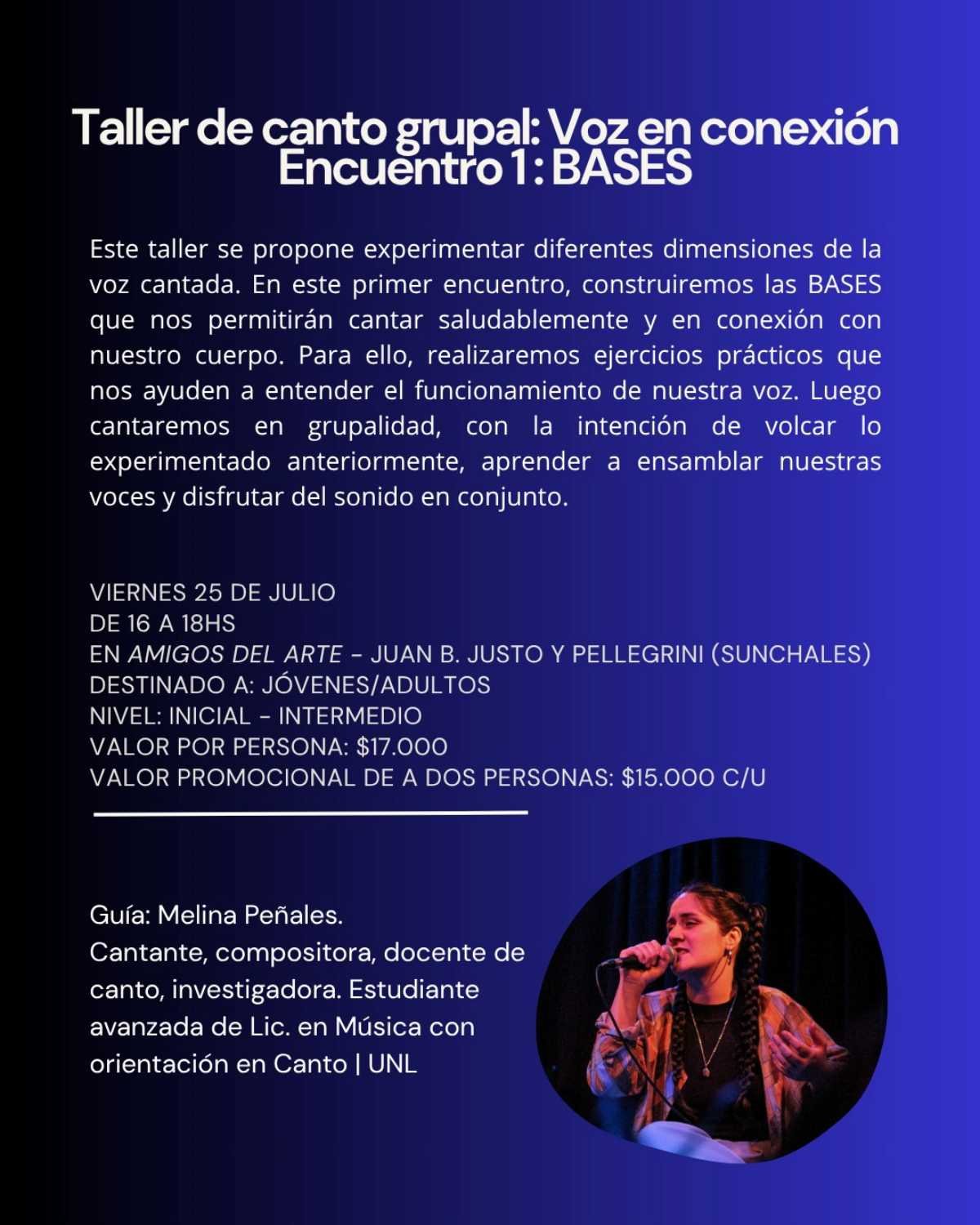 La propuesta, pensada en canto grupal, estará centrada en «experimentar diferentes dimensiones de la voz cantada», con ejercicios prácticos para comprender el funcionamiento de nuestra voz.