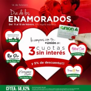 Festejemos San Valentín con la gran promoción «Día de los enamorados» de Tarjeta +Unión.