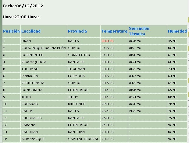 Si bien la temperatura máxima no llegó a los 38 grados (aún lejos de los 42.8º del 9 de enero, marca máxima este año), la sensación térmica los superó holgadamente, instalando como viene sucediendo este año, a nuestra ciudad como una de las más calurosas del país. Este ranking que a cada hora elabora el Servicio Meteorológico Nacional, seguía dejando a Sunchales a la hora 23 como la 12º localidad con más alta temperatura.