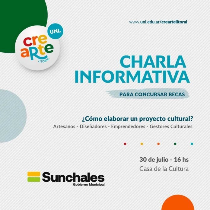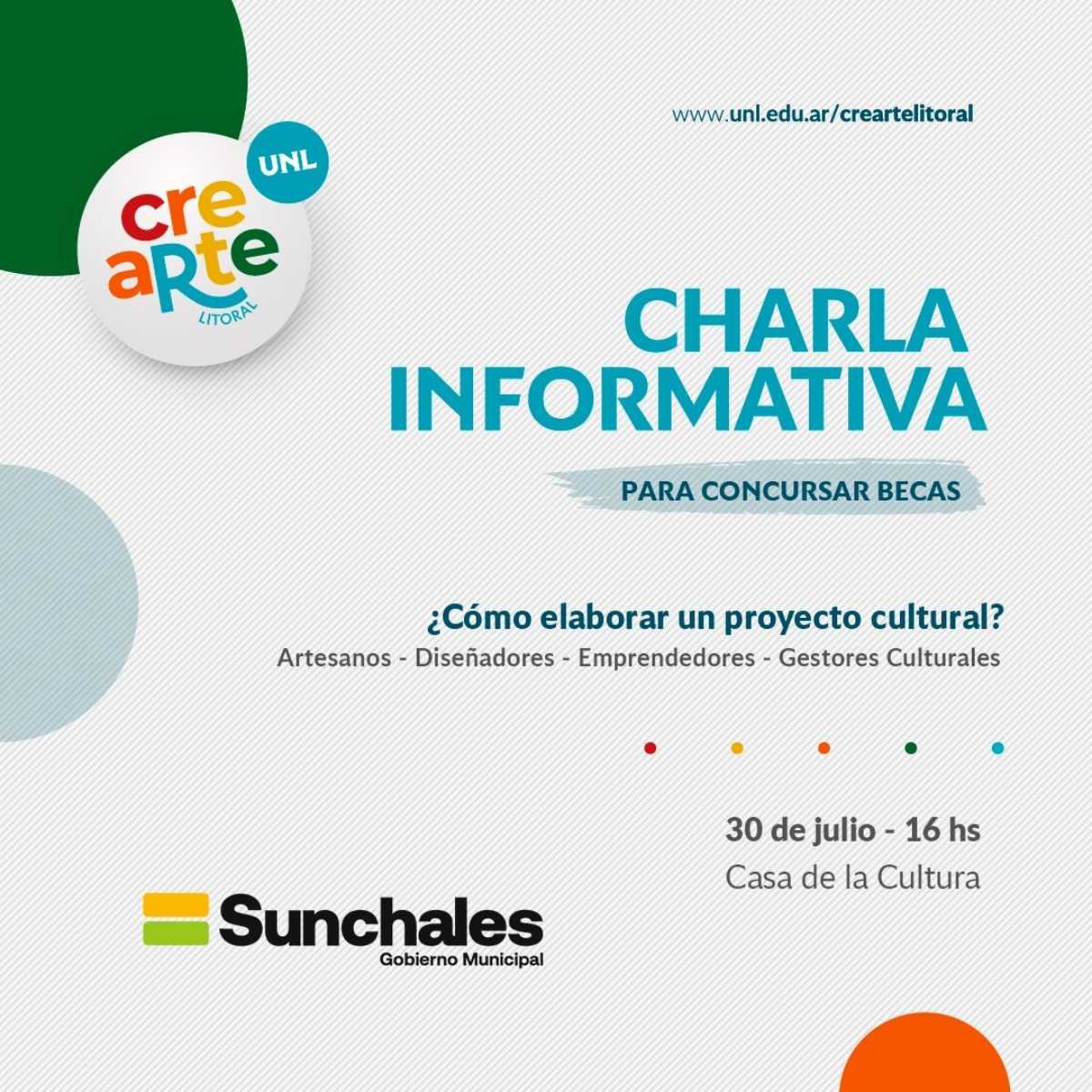 Desde la Subsecretaría de Cultura y Educación del Municipio se informó acerca de la realización de una charla informativa para gestión de proyectos culturales, este miércoles a las 16, en la Casa de la Cultura.