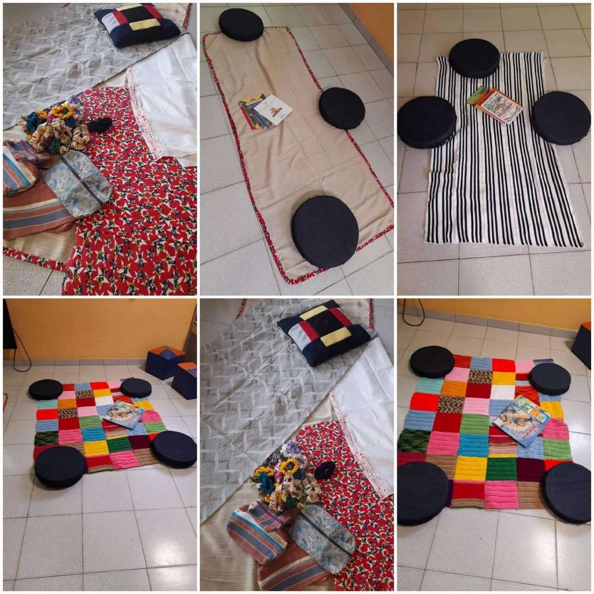 En el Costurero del Parque hemos confeccionado mantas uniendo dos telas y otras con cuadritos tejidos, para que niños del Jardín Nº 274 «María Montessori» y de la escuela Nº 806 «General San Martín» (conocida como «Campo Ristorto») las utilicen para su momento de lectura. También recibimos de una vecina almohadones que entregamos para que los niños se sienten sobre las mantas y lean sus cuentos.