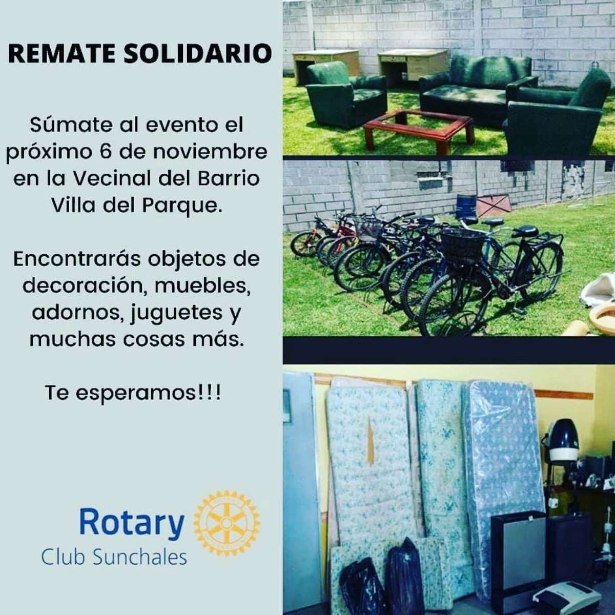 El Rotary Club informó acerca de la realización de su ya tradicional Remate Solidario. En esta oportunidad, lo producido a partir de esta iniciativa que tendrá lugar el venidero mes de noviembre, será destinado a la Comisión Vecinal del barrio Villa del Parque.