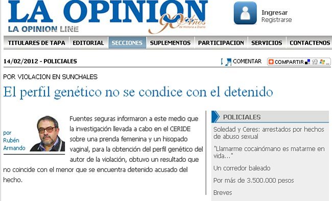 Ayer, el juez Stegmayer, habría recibido del Ceride el resultado de las pericias y en estas se habría determinado la existencia de un patrón masculino, el cual no coincidiría con la muestra de sangre del joven imputado y detenido en un primer momento.